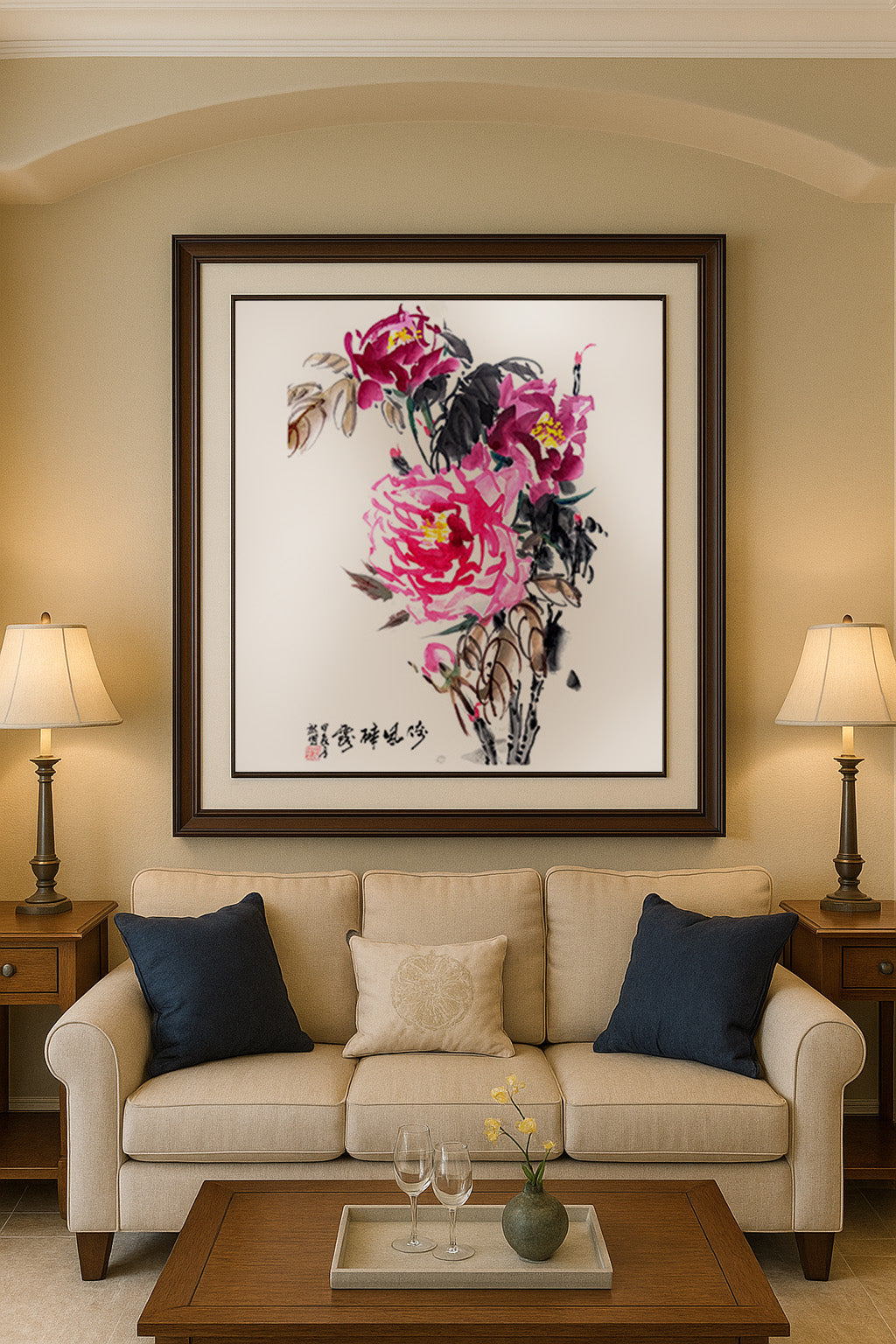 This fine art print by artist MingXiong features a traditional Chinese peony painting, symbolizing wealth, honor, and beauty. With elegant brushwork and vivid colors, it brings cultural charm and timeless elegance to any space—perfect for home, office, or as a meaningful gift.
