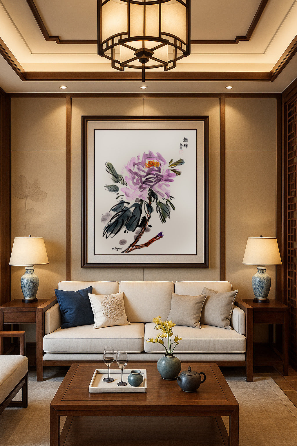 This fine art print by artist MingXiong features a traditional Chinese peony painting, symbolizing wealth, honor, and beauty. With elegant brushwork and vivid colors, it brings cultural charm and timeless elegance to any space—perfect for home, office, or as a meaningful gift.